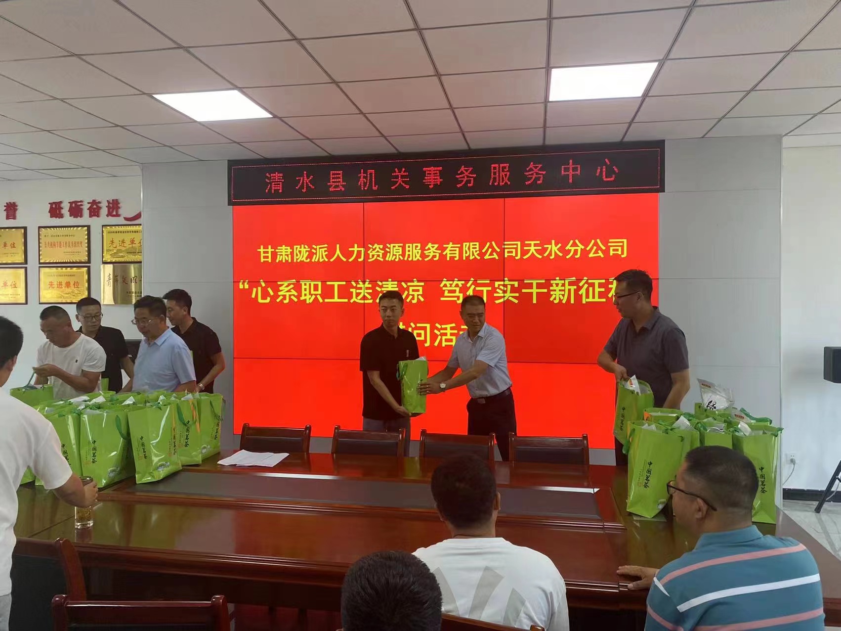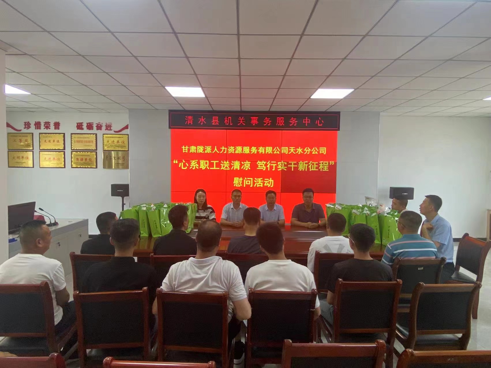 近日,甘肃陇派人力资源服务有限公司天水分公司联合天水市机关事务服务中心、天水市总工会对市级公务车队驾驶员进行了慰问,为奔波在一线的驾驶员送来了防暑降温慰问品,勉励他们弘扬“爱岗敬业、争创一流、艰苦奋斗、勇于创新、淡泊名利、甘于奉献”的劳动模范精神,在认真落实疫情防控各项措施的同时,做好加强自身安全防护,为全市各项重大活动重点工作重要会议提供优质高效安全的车辆服务保障,以实际行动迎接党的二十大胜利召开。